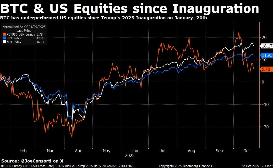 Bitcoin has underperformed nearly every major asset class this year. By the fourth quarter of 2025, it had significantly lagged behind gold, the Nasdaq, the S&P 500, the Hang Seng, and the Nikkei 225. Investors who bought Bitcoin around President Trump's inauguration in 2025, anticipating a positive market response from his endorsement, have so far earned a meager return of just over 5%.