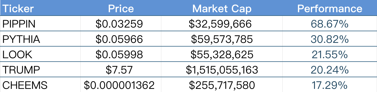 1. The global cryptocurrency market capitalization totaled $3.91 trillion, down 1.5% from $3.97 trillion last week. As of press time, the US Bitcoin spot ETF saw a cumulative net inflow of approximately $61.19 billion, with a net outflow of $607 million this week; the US Ethereum spot ETF saw a cumulative net inflow of approximately $14.37 billion, with a net inflow of $114 million this week. 2. The total stablecoin market capitalization was $304.8 billion, with USDT accounting for $183.5 billion (60.2%), followed by USDC at $75.8 billion (24.86%), and DAI at $5.37 billion (1.76%).