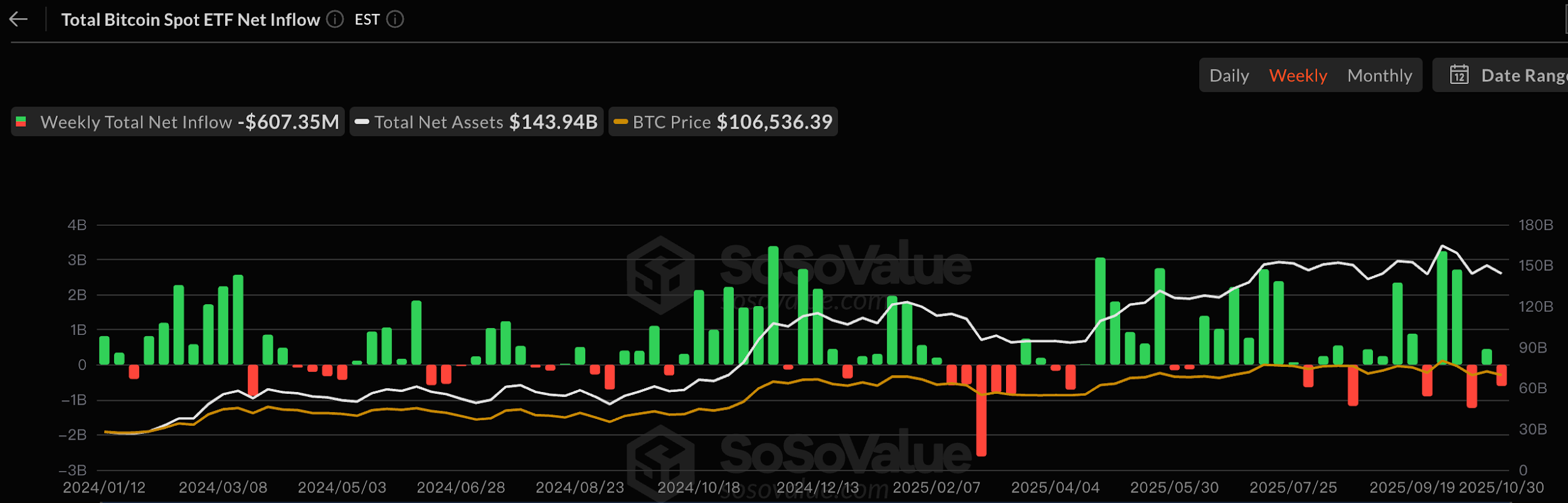 As of press time, the total net inflow into U.S. Bitcoin spot ETFs was approximately $61.19 billion, with a net outflow of $607 million this week; the total net inflow into U.S. Ethereum spot ETFs was approximately $14.37 billion, with a net inflow of $114 million this week.