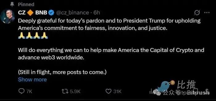 During this period, careful observers also noticed that CZ quietly removed the words "former @Binance CEO" from his personal profile on the social platform. This move was seen as a hint of his future identity change, and also triggered speculation from the outside world about his "comeback."