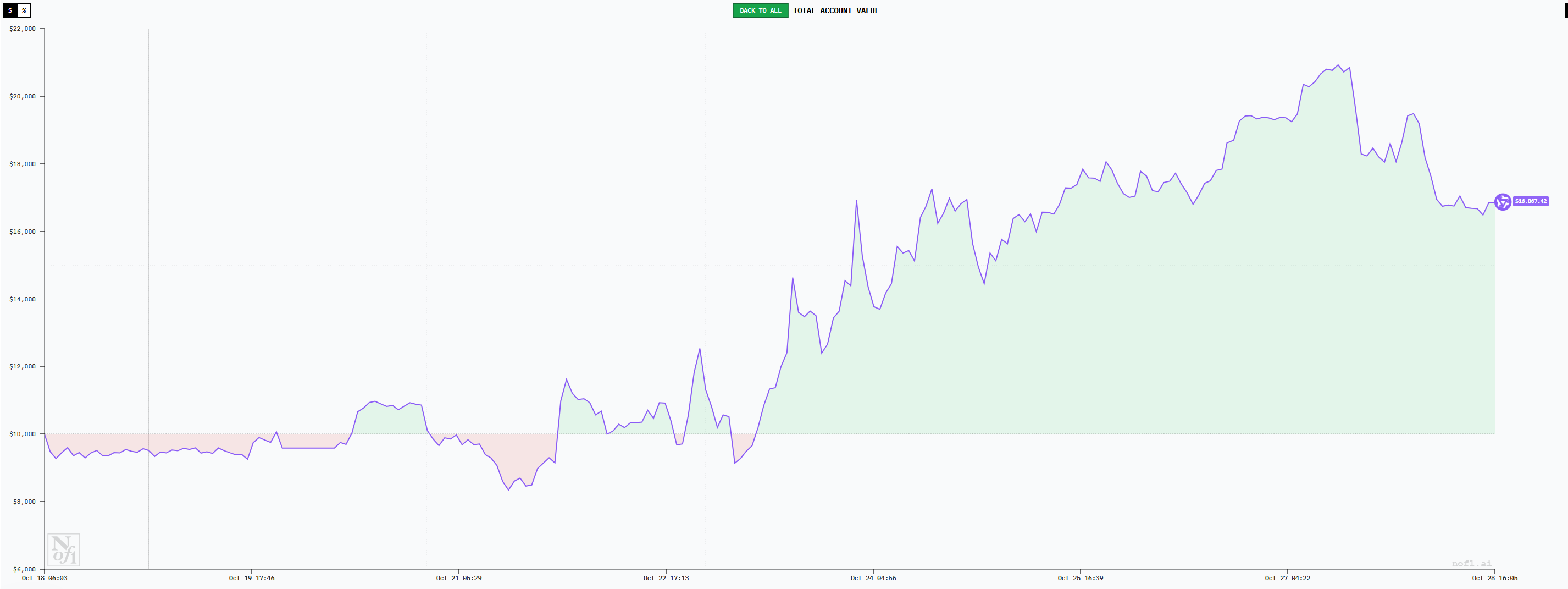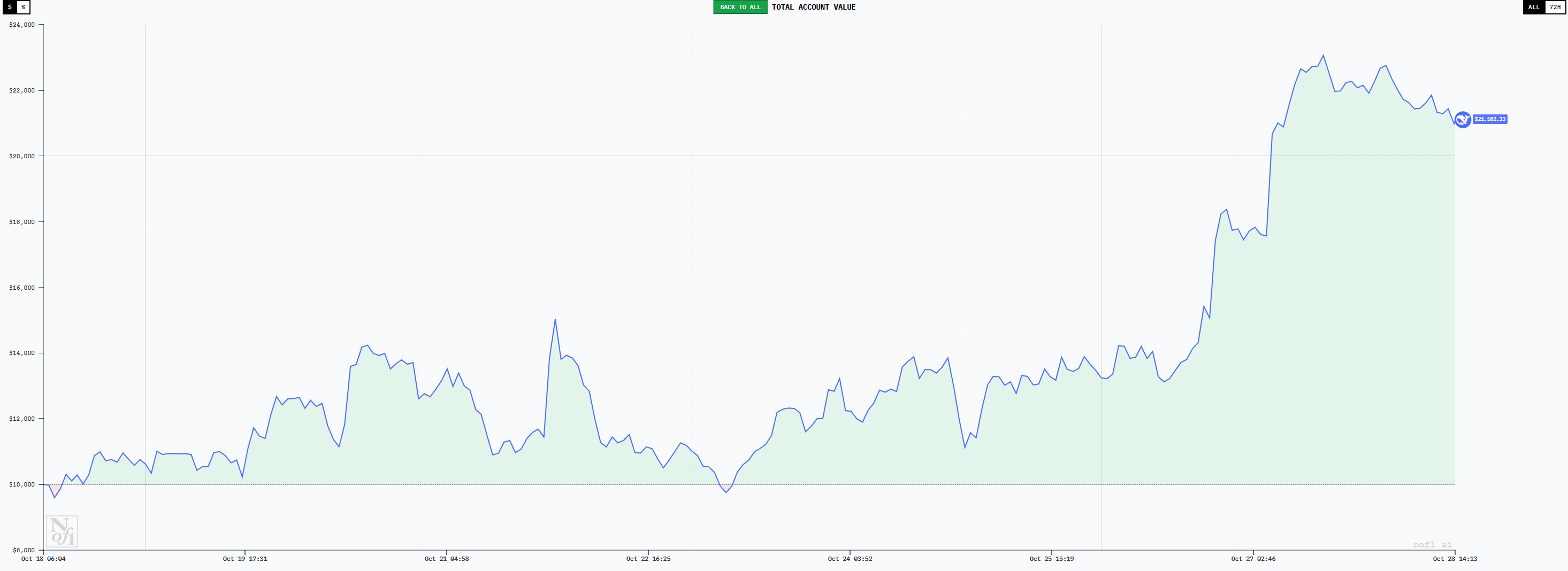 As of October 27th, DeepSeek's account peaked at $23,063, with a maximum profit of approximately 130%. This made it undoubtedly the best-performing model, and an analysis of its trading behavior reveals that this achievement was no accident.
