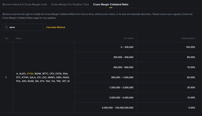 For example, let's say you keep 200,000 ATOMs for daily market making and stake the remaining 800,000 ATOMs ("collateral"). Assuming the market price is 4 million U, the available amount is 1,120,000 (200,000 * 100% + 200,000 * 80% + 200,000 * 70% + 200,000 * 50% + ....)