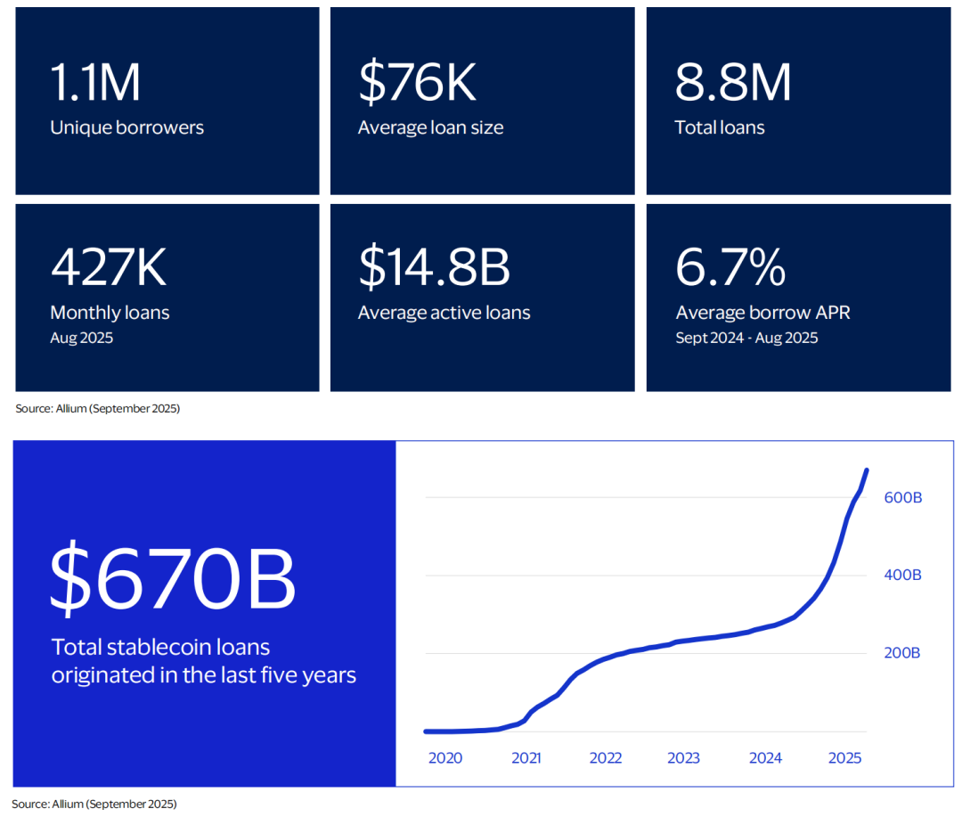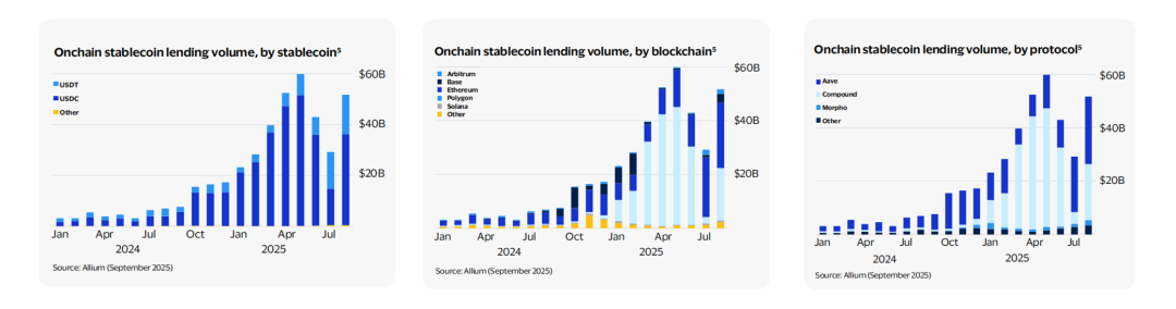 The global on-chain lending market is expanding rapidly, reaching a monthly scale of US$51.7 billion in August 2025, with more than 81,000 active borrowers, demonstrating the size and growth rate of the credit market driven by stablecoins.
