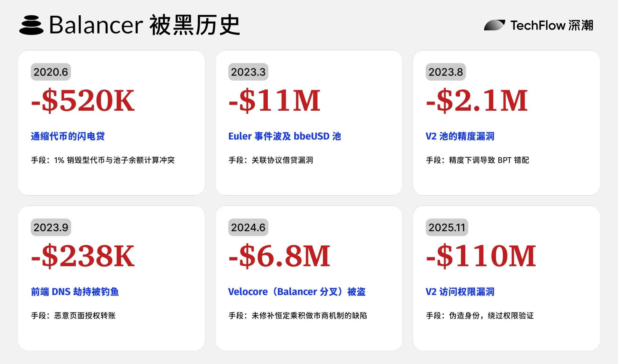 As a long-established DeFi protocol founded in 2020, Balancer has experienced six security incidents in the past five years, with an average of one hacker attack per year. This incident was just the one with the largest amount of money stolen.