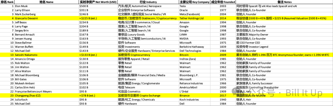 3. The cryptocurrency industry has contributed three of the world's top 25 wealthiest individuals: Giacarlo, CZ, and Satoshi Nakamoto. Cryptocurrency is the only industry with this explosive growth potential, while AI is bringing even greater value to established tech figures like Musk, Bezos, and Gates.