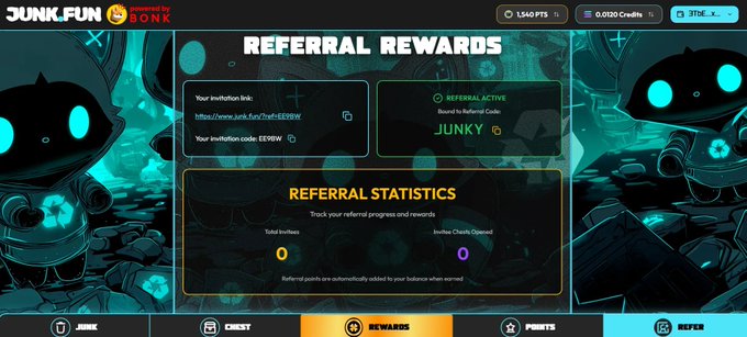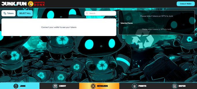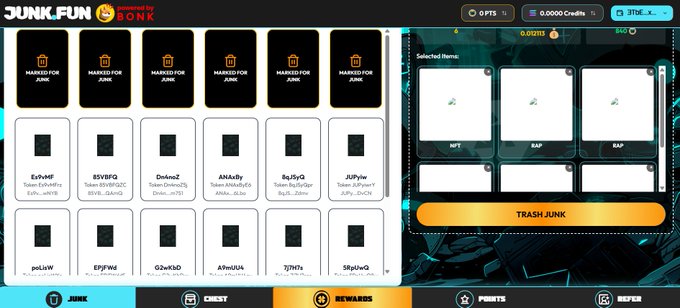 Users can destroy "zeroed-out MEME, passively received garbage airdrops, and NFTs" on Junk.Fun in exchange for SOL. After destruction, users will receive Credits on Junk.Fun.