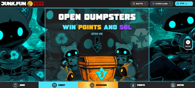 2) Open Junk.Fun chests to win more SOL, physical prizes (such as iPhones), NFTs, and other rewards in future airdrops.