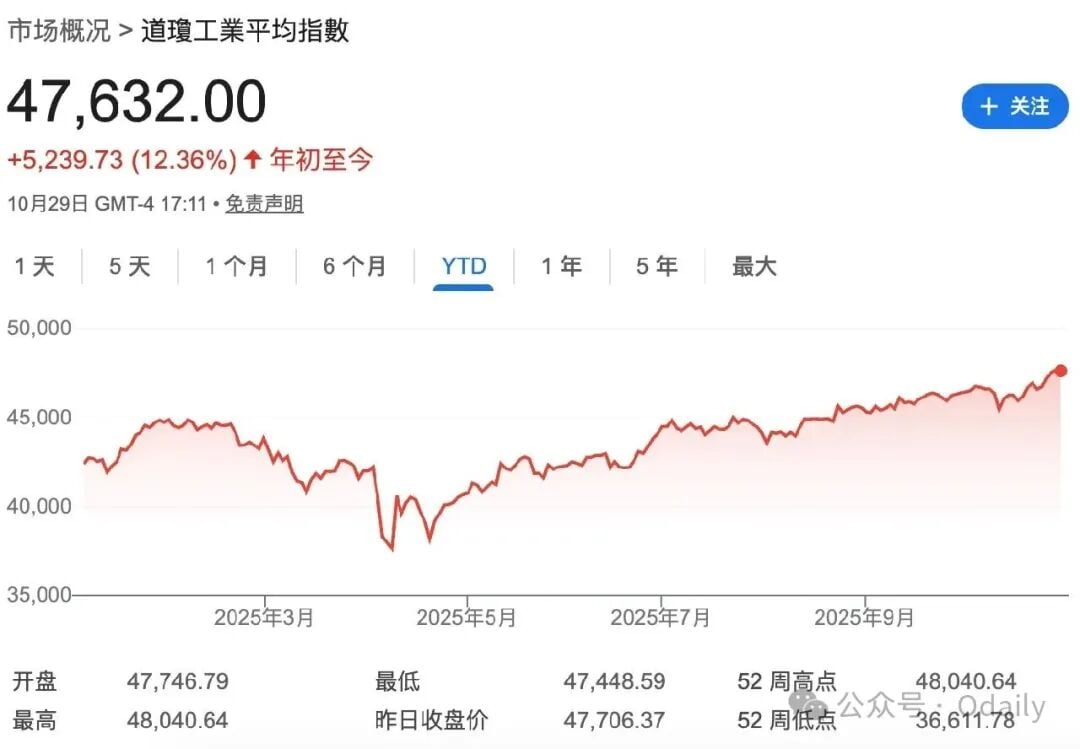 As we can clearly see from the comparison chart below, gold's over 50% increase is more impressive than BTC's current increase of approximately 17%. In contrast, although the Dow Jones Industrial Average's increase is less than BTC's, it reached 48,000 points last night, setting a new record high. Compared to BTC's decline from over $125,000 to its current price of around $111,000, gold has undoubtedly performed better.