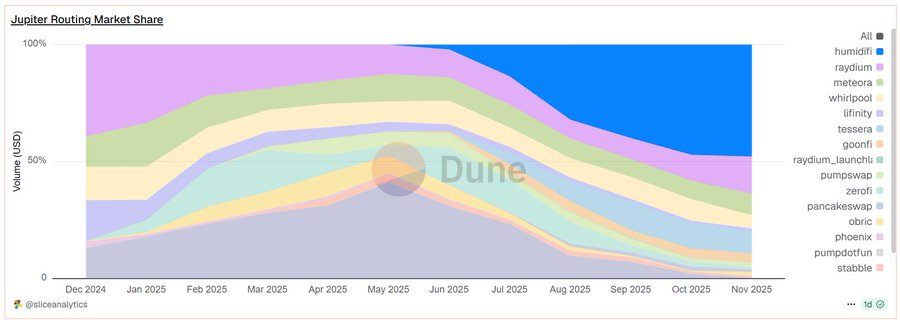 HumidiFi holds a 54.6% market share in Jupiter's professional market maker routers.