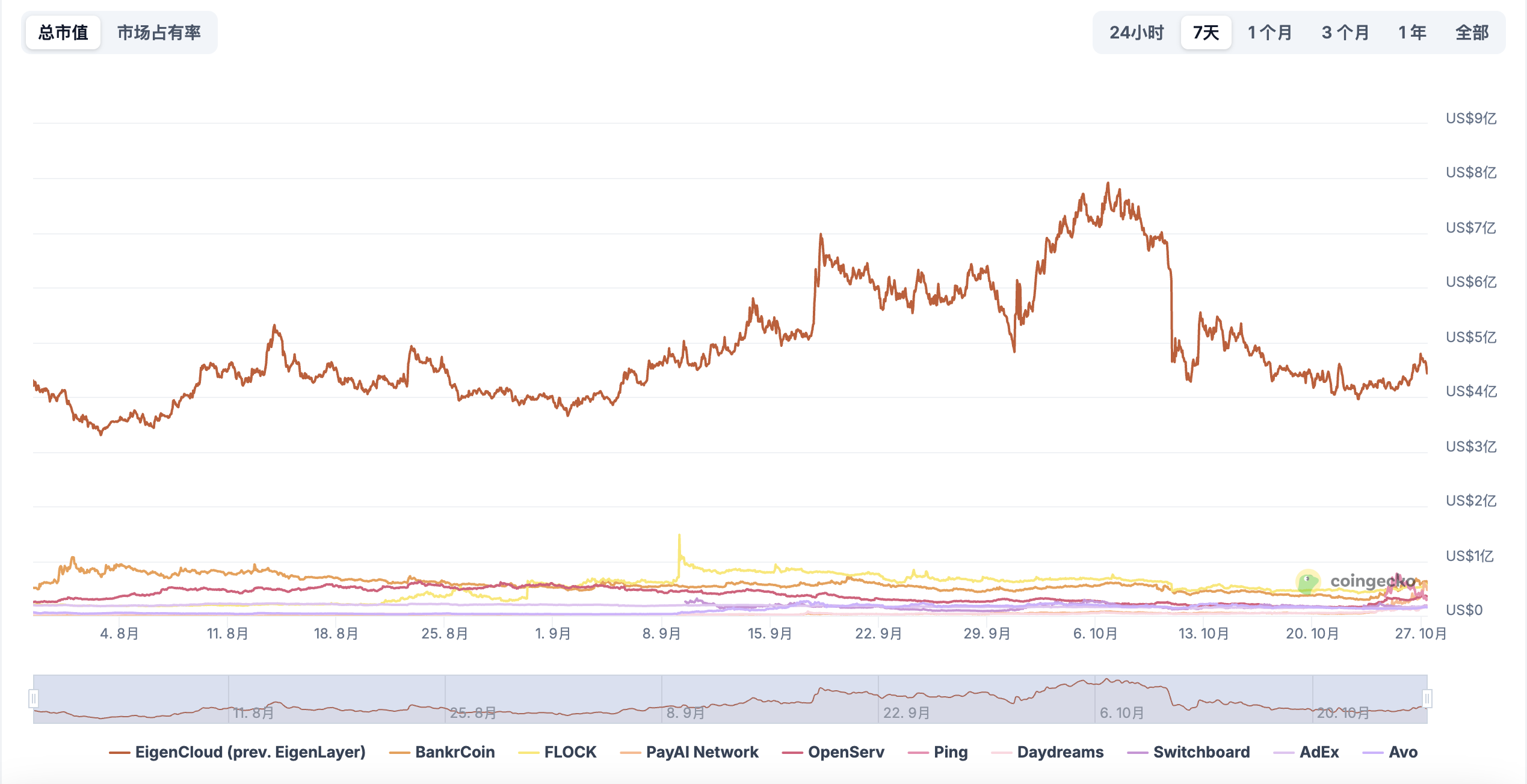 In terms of project types, the leading projects are primarily AI Agent and MEME coin. MEME coin is primarily influenced by market enthusiasm. For example, PING once led the market outside of EigenCloud, but was subsequently overtaken by AI projects such as PAYAI and OpenServ. This also shows that funds are gradually flowing into projects with practical application value.