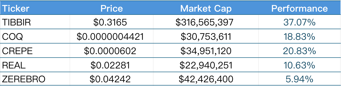 1. This week’s top five VC and Meme coins with the highest growth