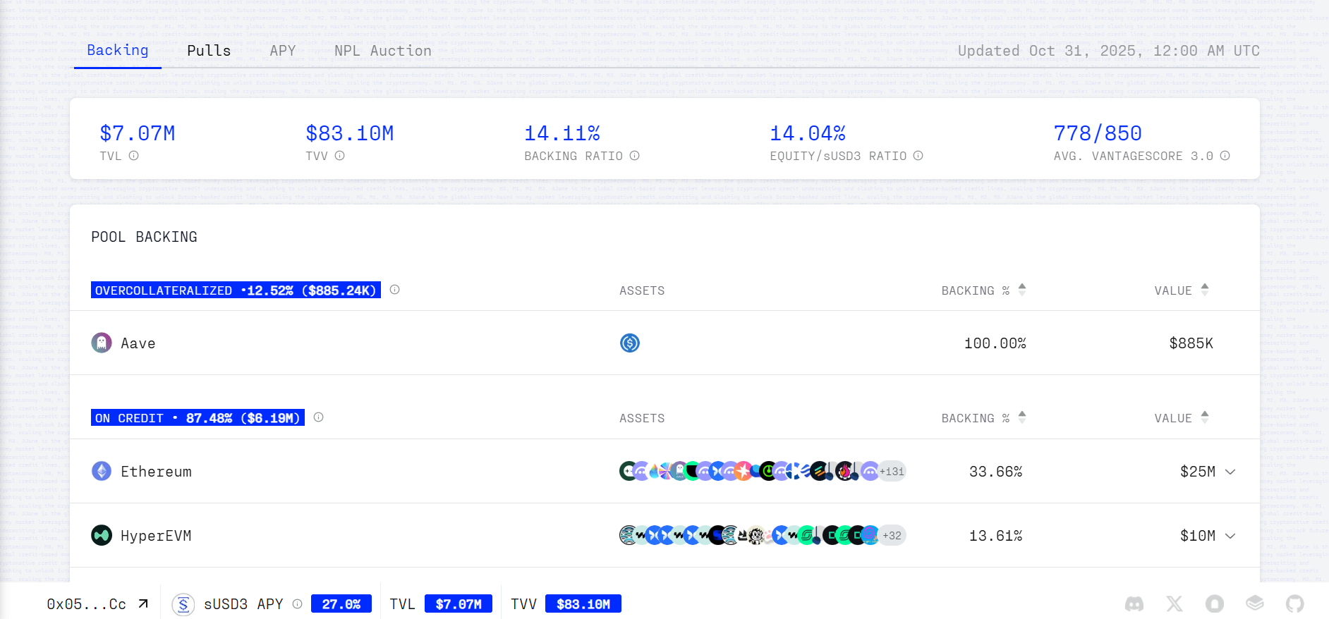 In its early stages, lenders can mint USD3 on 3Jane by depositing USDC, or by staking USDC/USD3 into the protocol to mint sUSD3, earning up to 27% APY. To date, over $7 million in credit lines on 3Jane are backed by approximately $83.1 million in verified assets.