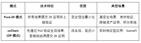 Brevis supports both Pure-ZK and CoChain (OP) models: the former achieves complete trust minimization, but at a higher cost; the latter allows verifiable computing at a lower cost through PoS verification and ZK challenge mechanism. The validator stakes on Ethereum, and if the result is proven by ZK that the challenge is successful, it will be fined, thus achieving a balance between security and efficiency. Through the architectural fusion of ZK + PoS + SDK, Brevis strikes a balance between security and efficiency and builds a scalable trusted data computing layer. Currently, Brevis has served protocols such as PancakeSwap, Euler, Usual, Linea, etc. All zkCoprocessor collaborations are based on the Pure-ZK model, providing trusted data support for DeFi, reward distribution and on-chain identity systems, so that smart contracts truly have "memory and intelligence."