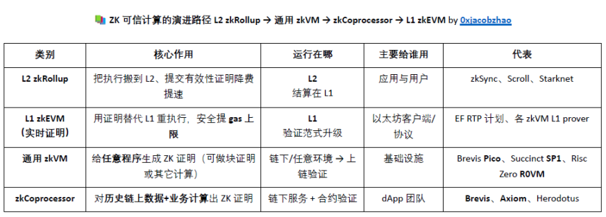 In general, zkVM is the underlying engine for verifiable computing, and zkCoprocessor is the application-layer verification module: the former builds a technological moat, while the latter drives commercialization, together forming a universal trusted computing network.