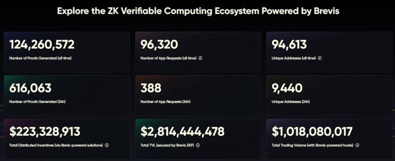 According to Brevis Explorer data, as of October 2025, the Brevis network has generated over 125 million ZK proofs, covering nearly 95,000 addresses and 96,000 application requests, serving a wide range of scenarios such as reward distribution, transaction verification, and proof of stake. Ecosystem-wide, the platform has distributed approximately $223 million in incentives, supporting over $2.8 billion in TVL, with cumulative trading volume exceeding $1 billion.