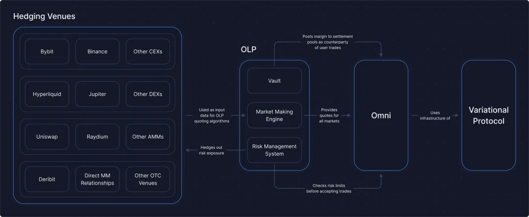 Besides the common practice of OLPs earning returns and handling clearing, the biggest difference between OLPs and HLPs is that OLPs hedge on DEXs/CEXs in the market.