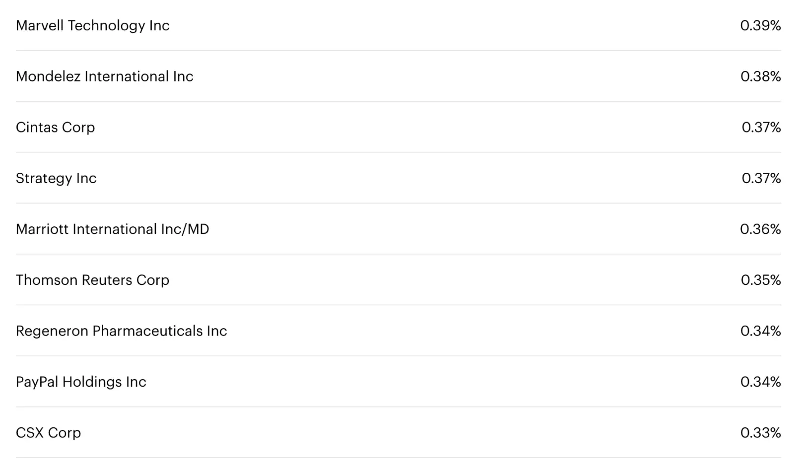 According to QQQ's holdings, Strategy's current weighting is approximately 0.37%, and its market capitalization has not fallen out of the top 100. The year-end index adjustment is based on data from the end of October, suggesting that Strategy remains safe this year.