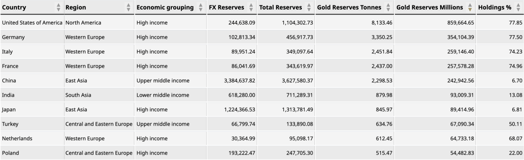 Looking at the proportion of gold reserves held by central banks of various countries, developed countries and developing countries are completely two different worlds: