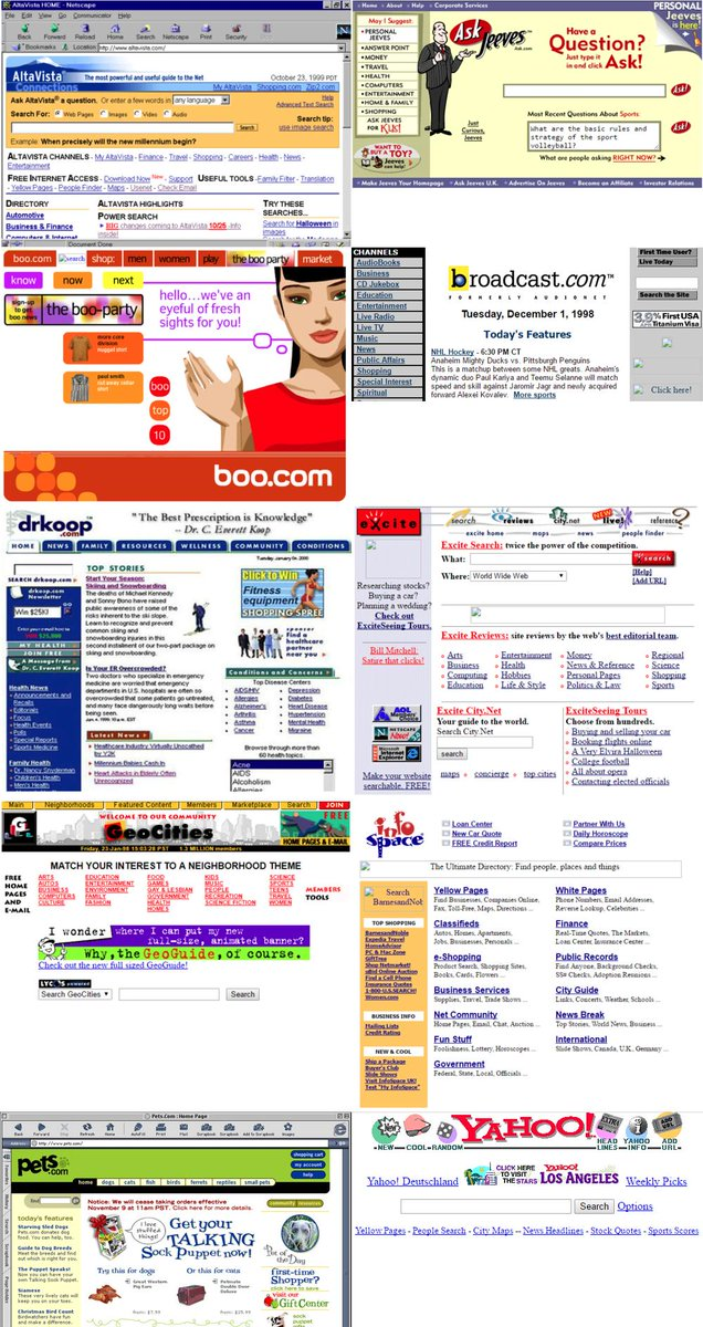 You probably don't recognize them. These are vintage homepages from the early days of dot-coms. Of course, they were nothing like the internet we know and love today.