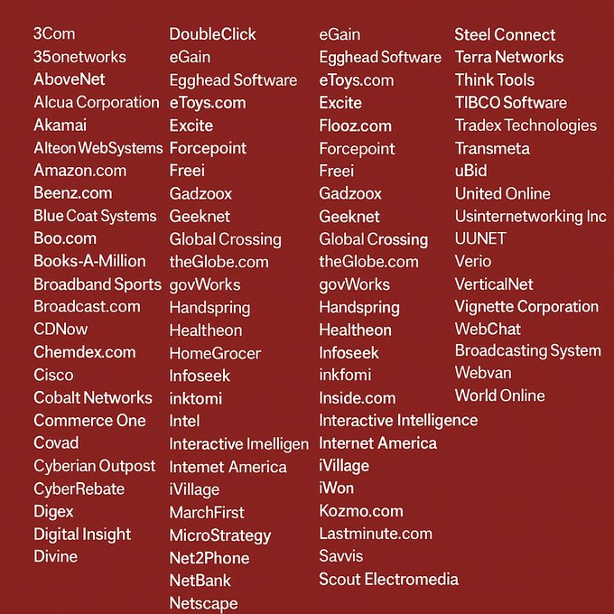 The following are some examples of listed companies that have failed since the bursting of the Internet bubble (source: Wikipedia):