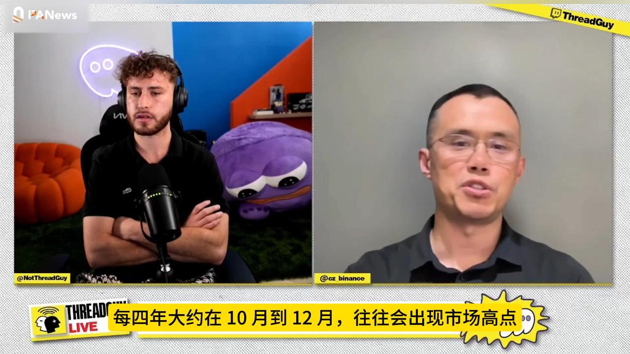 During the live broadcast, CZ expressed his positive attitude towards Bitcoin and the crypto industry, believing that the current volatility has stabilized. He also pointed out that Bitcoin follows a four-year cycle and often reaches a peak in October-December.视频