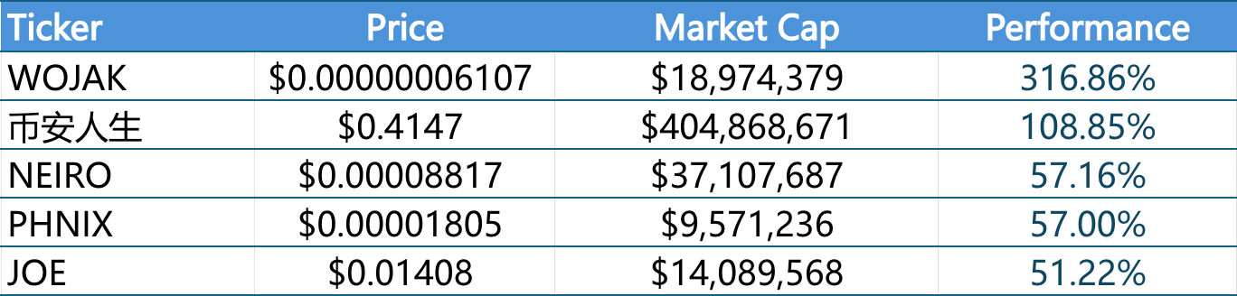 日活跃地址与TVL:日活跃地址反应了公链的生态参与度和用户粘性,TVL反应了用户对平台的信任程度。日活跃地址方面。仅BNB Chain(275万个,+10.44%)、Sui(29.4万个,+0.14%)实现涨幅;其余链均下跌,分别为Solana(221万个,-45.92%)、Ethereum(47.3万个,-19.35%)、Aptos(110万个,-19.08%)和Ton(11.9万个,-6.68%)。TVL方面,Ethereum($47.26B)、Ton($0.058B)和Sui($0.55B)分别下跌11.47%、4.26%和3.51%;其余链包括Solana、BNB Chain、Aptos实现约1%-2%小幅上涨。
