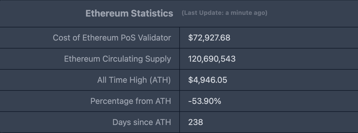 ETHUSD :现价$2,279.78,历史最高价$4,946.05,距最高价跌幅约53.89%