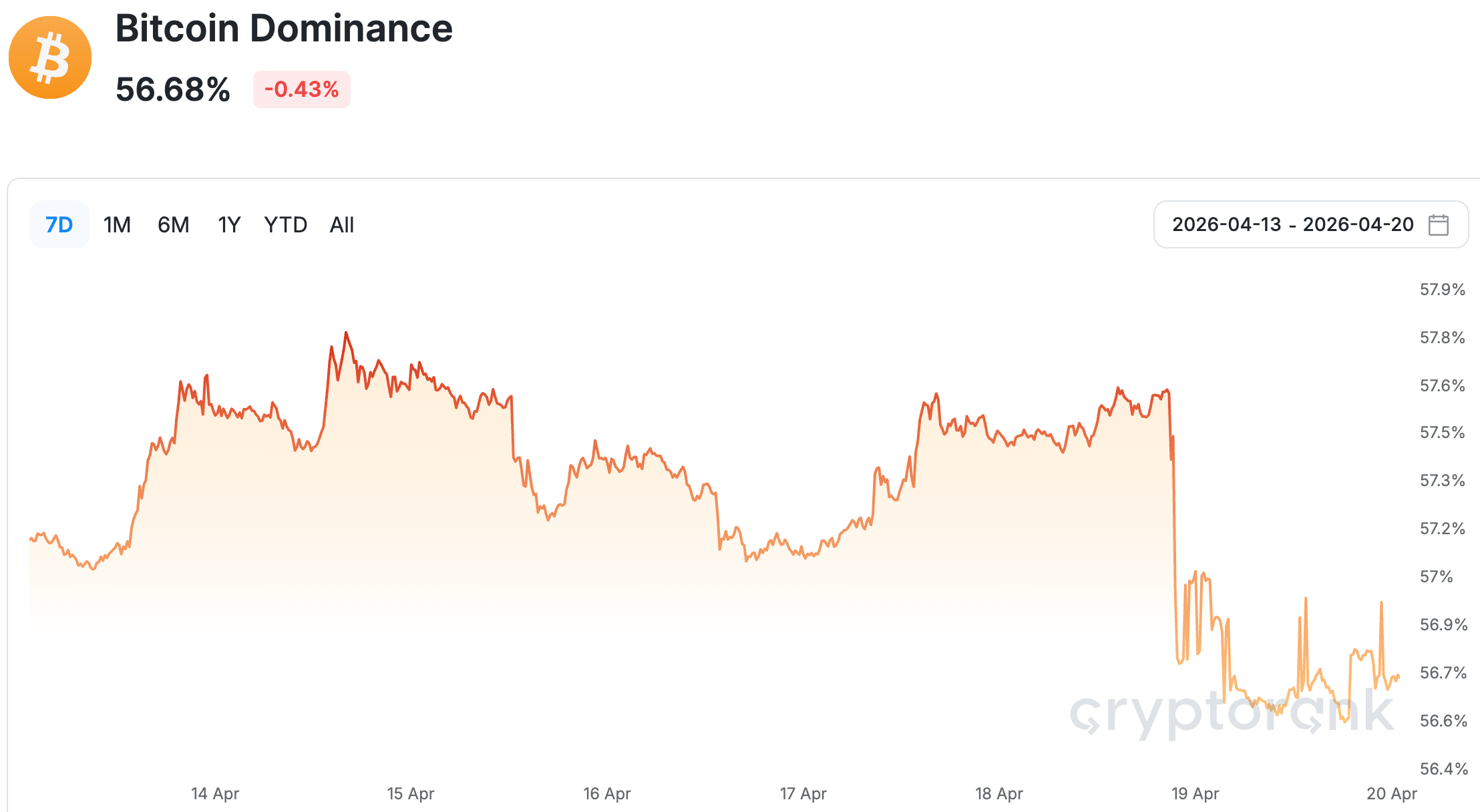 数据来源:Bitcoin dominance from cryptorank, https://cryptorank.io/charts/btc-dominance