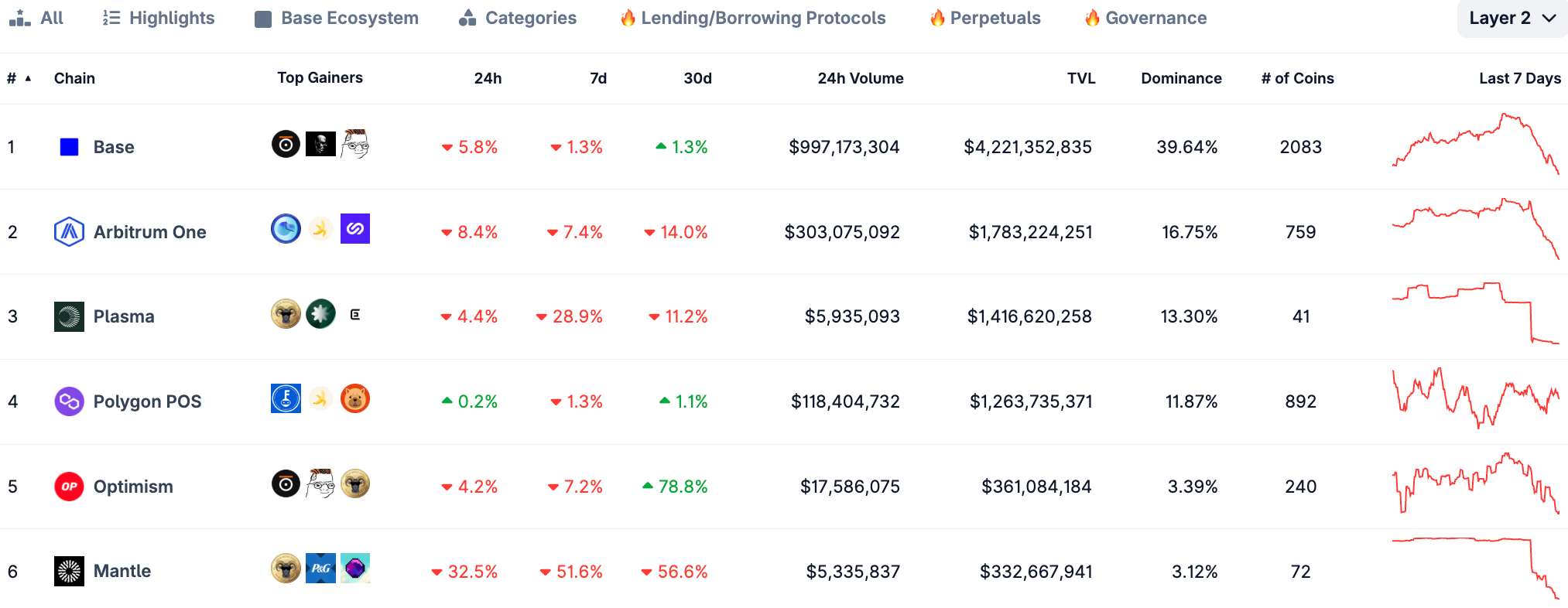 数据来源:CoinGecko, https://www.coingecko.com/en/chains/layer-2