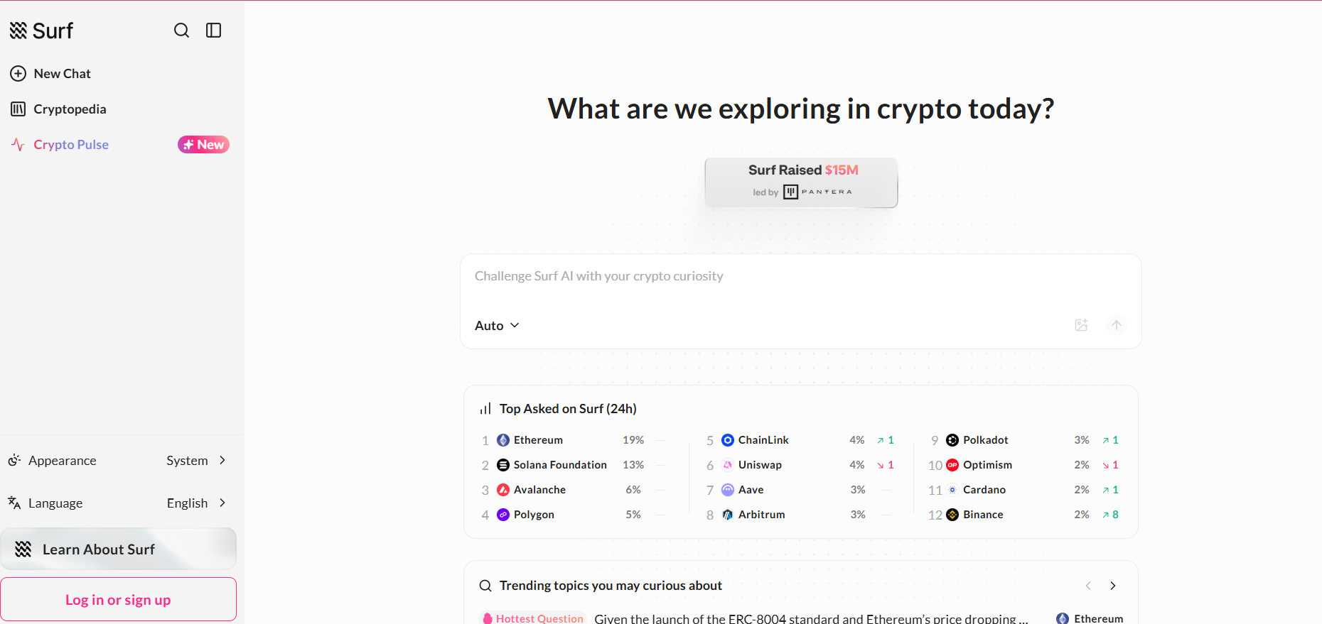 Surf 是一个专为加密货币行业打造的 AI 分析助手,聚合链上数据、社交情绪、技术指标与市场信息,用自然语言回答用户的加密相关查询。它可以用于分析币种、市场动向、基本面、链上行为等,并能生成结构化报告以辅助交易与决策。