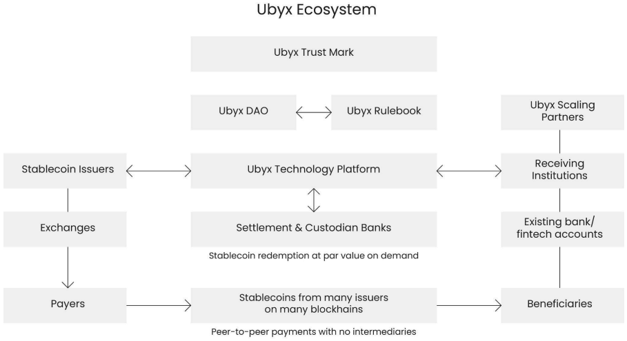 Ubyx 的优势在于其从金融基础设施与合规层面切入稳定币问题,通过共享规则手册和预注资清算账户,实现稳定币在多链、多币种环境下的面值兑付与现金等价会计处理(IAS7),显著降低了商户、银行和机构使用稳定币的合规与结算摩擦,并使稳定币真正具备“数字现金”的可用性;同时,它不依赖新的支付中介,而是复用现有银行与支付网络,利于规模化落地。