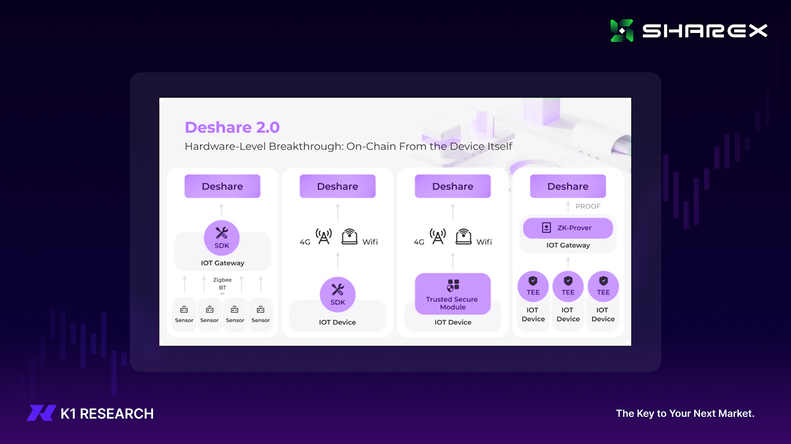 Deshare Protocol 的目标是把这一“信任缺口”转化为可工程化解决的问题:让真实世界数据在链上具备可信与可验证的属性,并在尽量不重构品牌既有业务系统的前提下完成 Web3 化。 Deshare 2.0 进一步把可信边界推向硬件侧,强调从设备本体产生可核验的链上证据,从源头降低口径污染与数据争议的空间。
