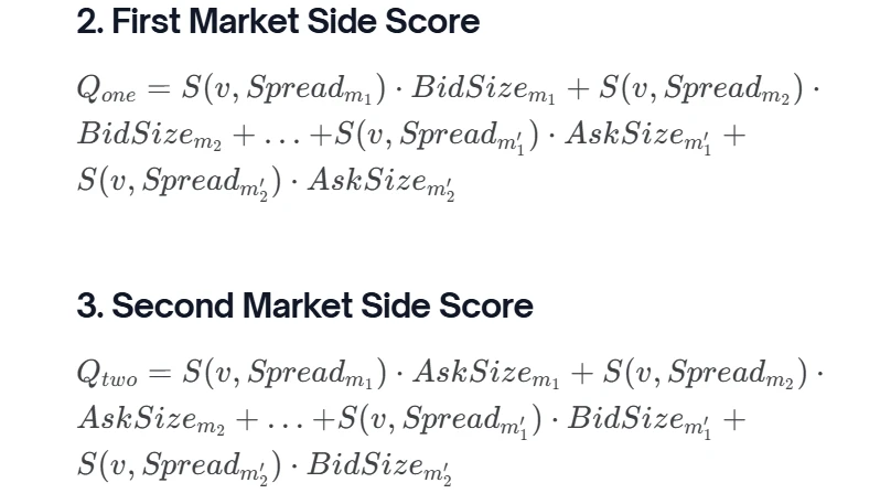 买卖投标单(bid)和询价单(ask)分别计算得分 ,考虑了 Yes/No 市场的互补结构。