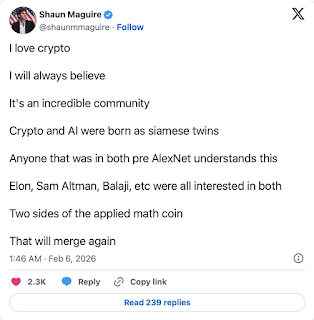 David提到了两个代表性声音:a16z合伙人Chris Dixon长期发声支持去中心化AI,并在该领域有所布局;红杉资本合伙人Shaun Maguire则撰文指出,加密与AI天生是一对。尽管有人认为Dixon的立场源于他的加密背景,但这些声音依然构成了硅谷内部对去中心化AI的正面注脚。