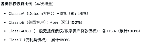 表面上看,这是一场属于Web3基础设施的胜利。相比于雷曼兄弟(Lehman Brothers)耗时14年、安然(Enron)耗费11年的漫长清算期,FTX在短短三年多时间内实现了惊人的高回收率 — — 美国客户(Class 5B)累计实现100%全额回收,便利类债权人(Convenience Class)甚至达到了120%的超额赔付,Class 5A也达到了约96%。链上资产的透明性、可追溯性以及极高的变现效率,让破产清算的速度远超传统金融体系。