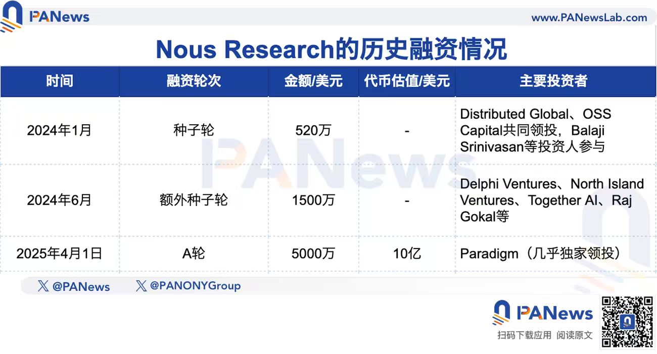 融资规模和阵容也进一步刺激了社区的空投预期。迄今为止,Nous已通过种子轮与A轮融资累计获得超过7000万美元资金,A轮以高达10亿美元的代币估值完成。投资阵容也极具加密色彩,包括Paradigm、Delphi Ventures、North Island、Solana联创Raj Gokal以及OpenSea创办人Alex Atallah等。