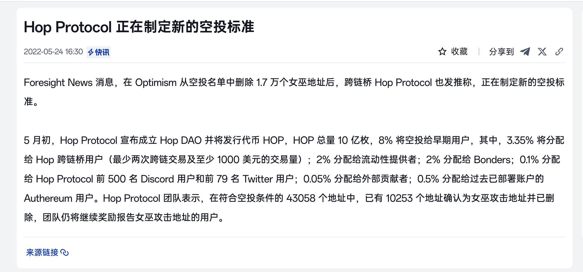 ●深远影响: HOP 之后,查女巫成了所有发币项目的「政治正确」,链上交互从「体验去中心化产品」变成了极致内耗的猫鼠游戏。打击女巫本身有其必要性,但把审查责任完全甩给社区、甚至鼓励互害的做法,严重破坏了社区生态。