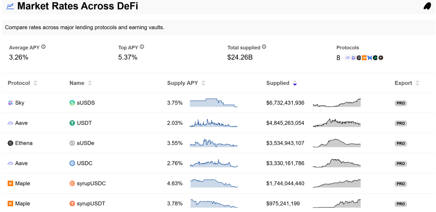 借贷费率与年化收益对比(参考 Aave 及主流 DeFi 利率)