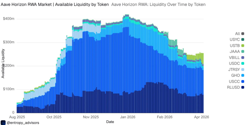 高收益信贷的主导地位可能部分是时间因素造成的。Aave Horizon 提供了最清晰的证据。