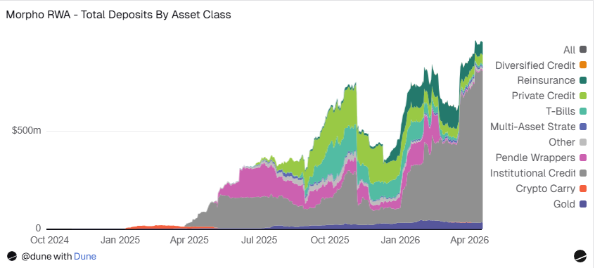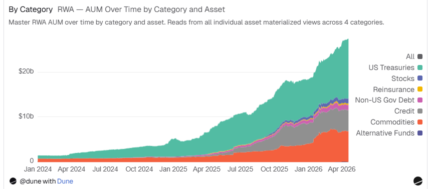 注:统计的 RWA 代币仅限于抵押品和金库供应量。数据截至 2026 年 4 月 16 日。