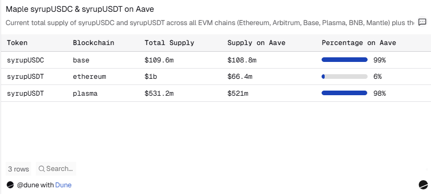 - Aave(9.29 亿):Maple 的 syrup 代币被存放在 Plasma、Base 和以太坊上。机构信贷以无需许可的方式流向借贷经济效益最好的地方。