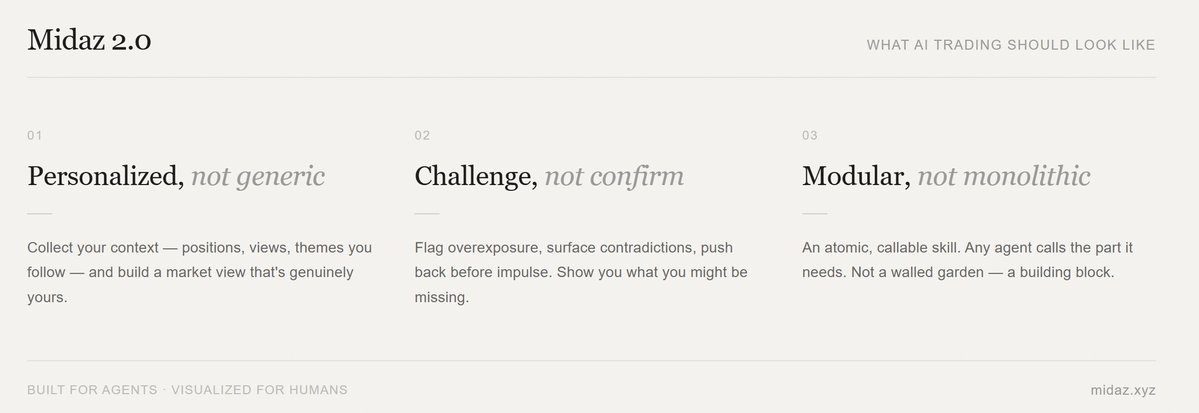 ●Midaz 则在应用层示范了"Built for Agents, Visualized for Humans"的 Skills 产品形态