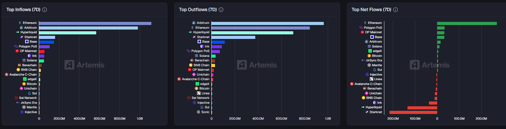 - 链上资产流向:DeFi 桥接资产流向分化,ETH 链净流入规模最大,STRK、HYPE 链流出最多;稳定币小幅增发,ETH 链 DeFi 资金出现明显腾挪,流向其他板块。