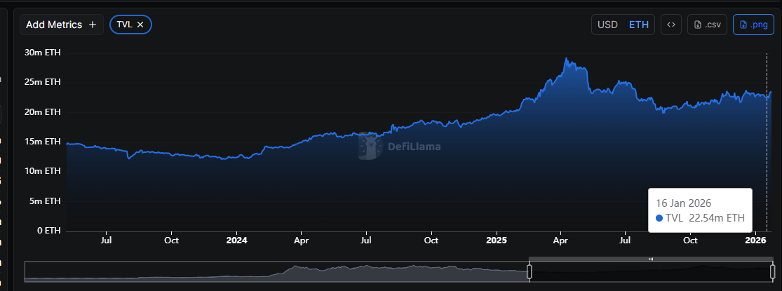 - 链上 TVL:总 TVL 报 1203 亿美元,环比下跌 6.67%,与币价同步走低;值得注意的是,ETH 链上质押数据逆势上升,与价格形成反向走势,显示长期资金对 ETH 生态的坚定布局。
