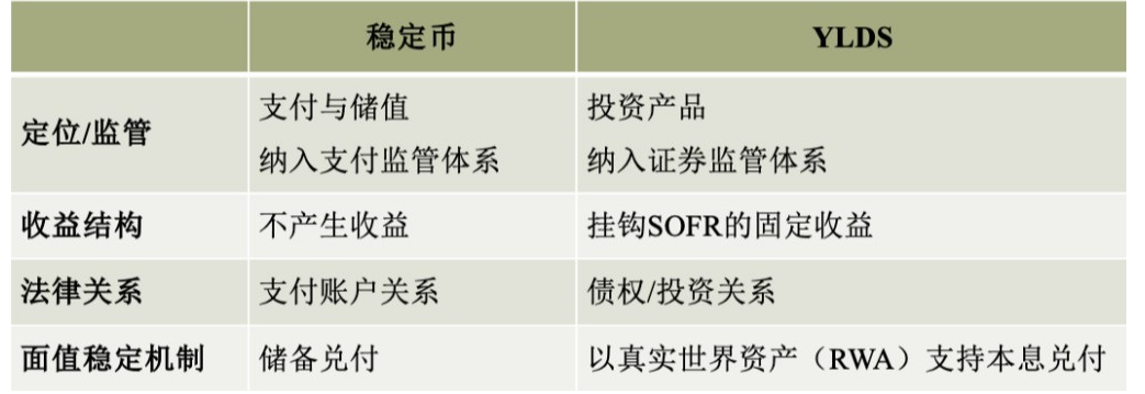 虽然YLDS在用户体验上类似于“生息稳定币”,但二者的法律属性和监管逻辑存在本质区别: