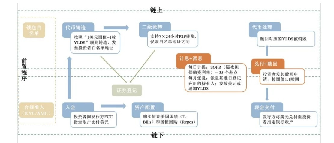 - 投资认购:投资者以美元认购YLDS,资金汇入独立托管账户